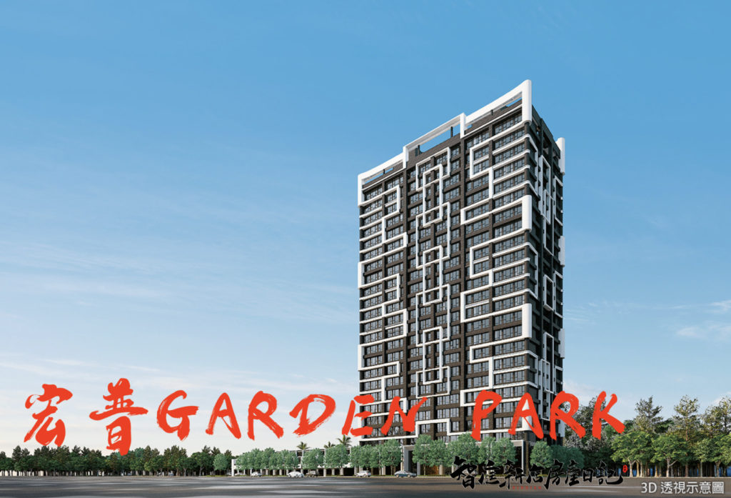 宏普GARDEN PARK(宏普中央公園2),基地面積1937坪,規劃兩棟地上24層、地下3層建物,1樓有24戶店面,大門和車道都位在文記街,公設規劃有戶外泳池、中庭花園、健身房、瑜珈教室,A棟住家單層7戶、B棟6戶,室內樓高達3米6,建材配有三協氣密窗搭配6+6mm膠合玻璃,蒸烤箱、廚下型加熱器、洗碗機、INAX衛浴等,室外則規劃約350坪中庭花園,搭配造型露天泳池,公設比約34.97%,管理費暫定每坪90元。全案預計明年1月動工,2026年完工。