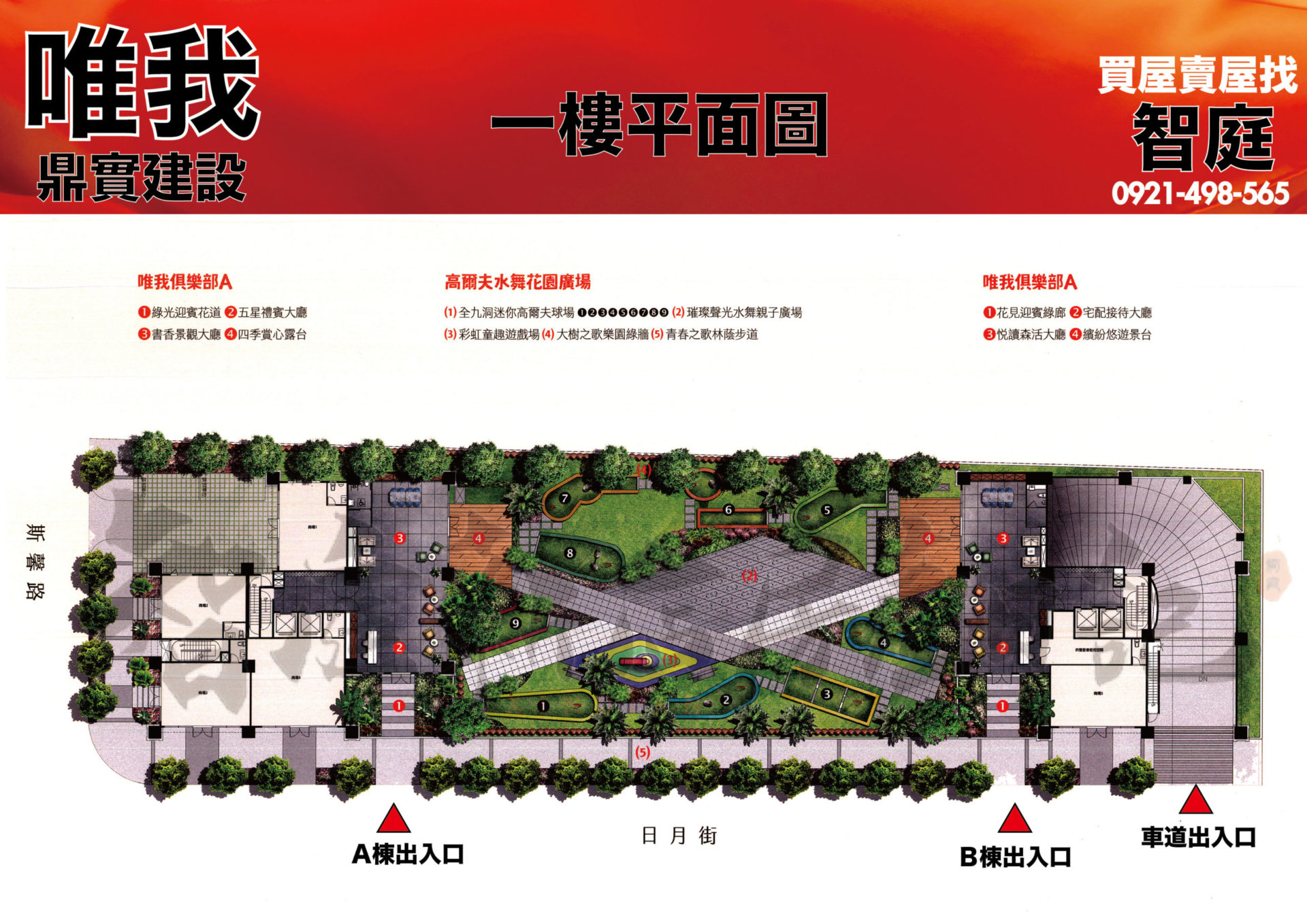 唯我建設公司為鼎實建設投資興建,基地面積963坪,唯我基地位於新北市新店區日月街&斯馨路,合約預計4年完工,但是接待人員說預計2025年下半年唯我交屋,門廳挑高4米85,總戶數162戶,公設比35%,唯我社區規劃AB兩棟,地上15/14F,地下到B3,A棟規劃15樓B棟規劃14樓,社區擁有中庭400坪俱樂部型中庭,9個迷你高爾夫球洞,中間設有水舞花園廣場,為我產品規劃24、30、36坪型兩房三房配置,三房面向社區中庭花園,兩房有兩邊面向,底下開始為我平面圖加工疊圖,跟唯我AB棟標準層。