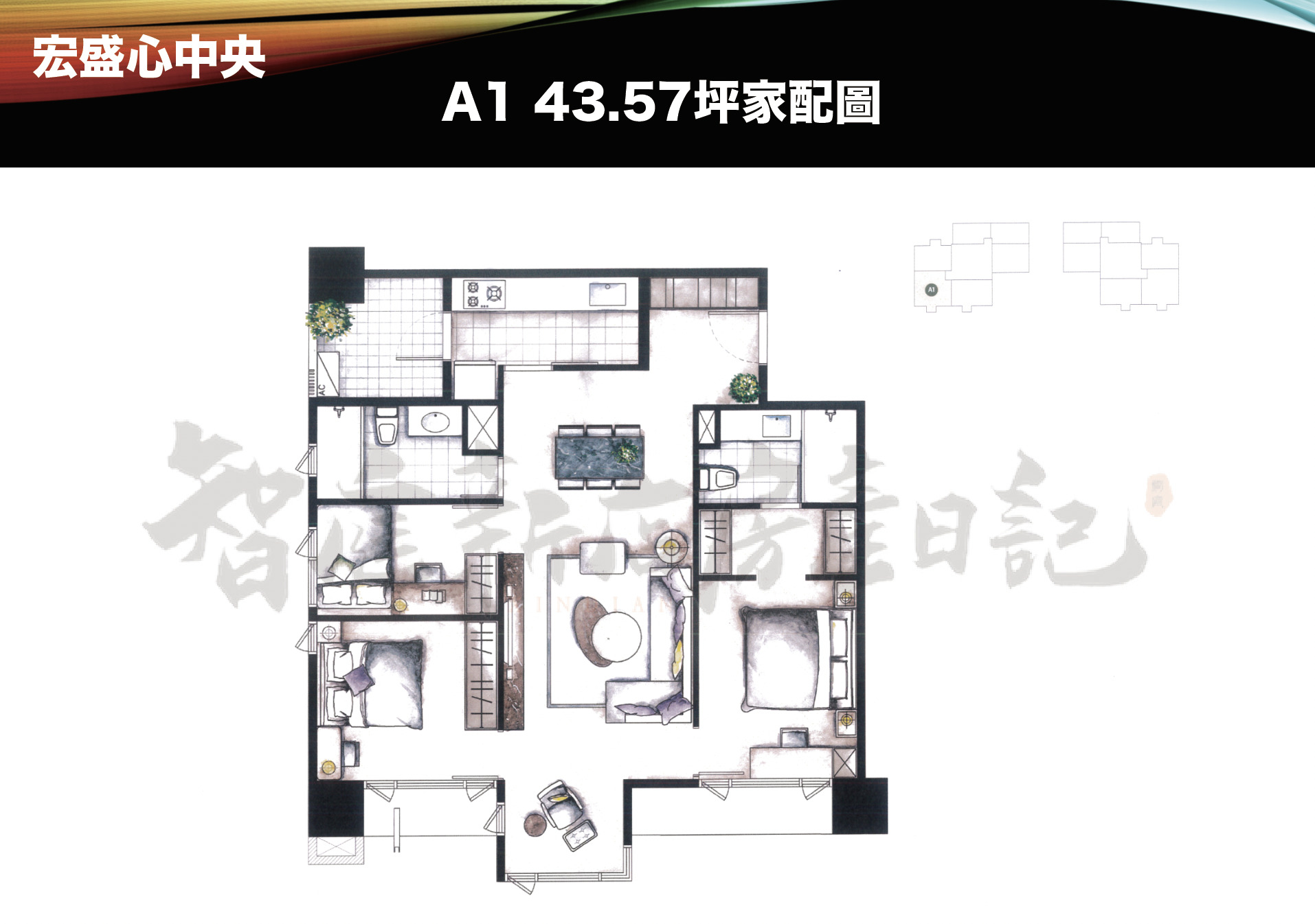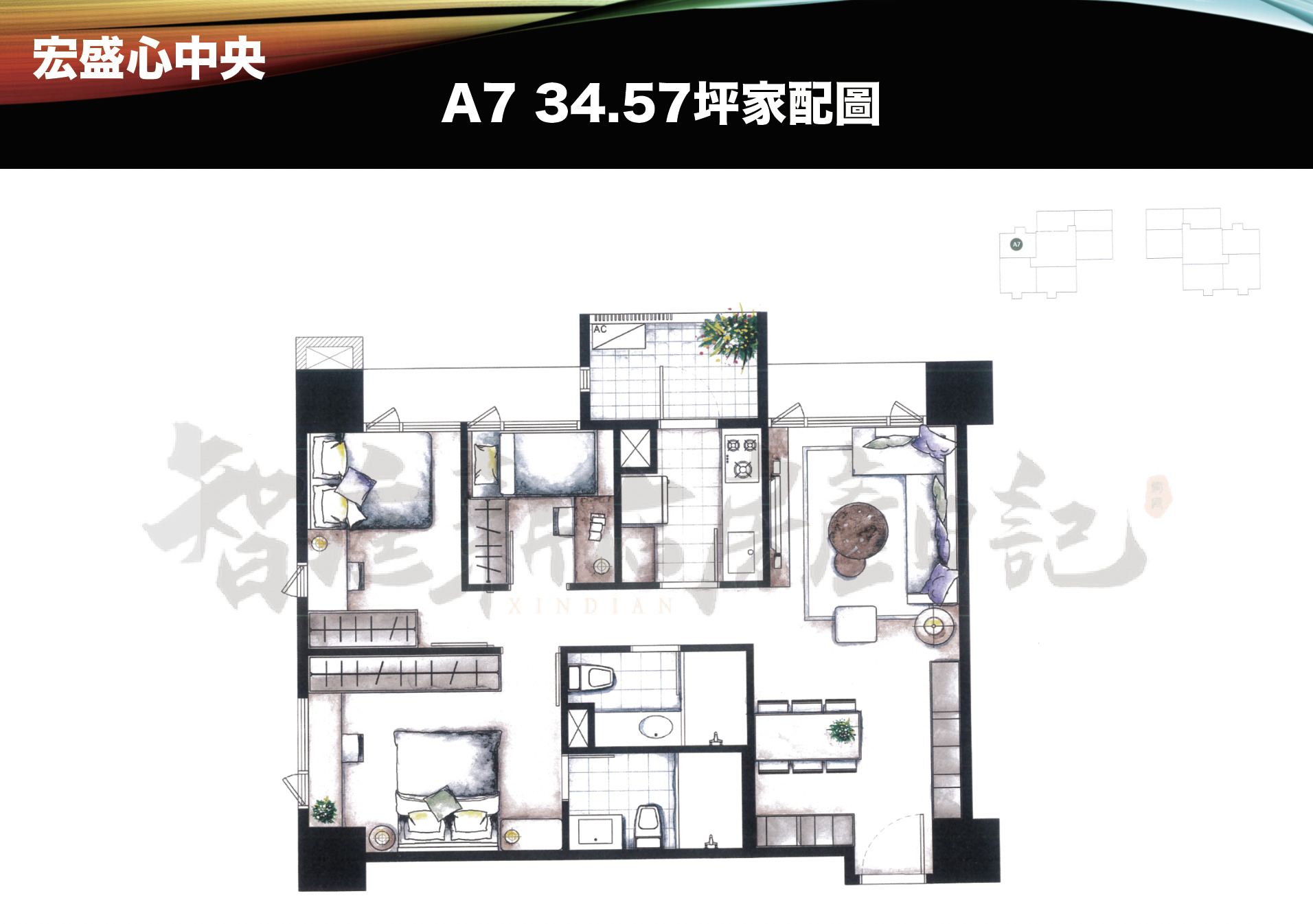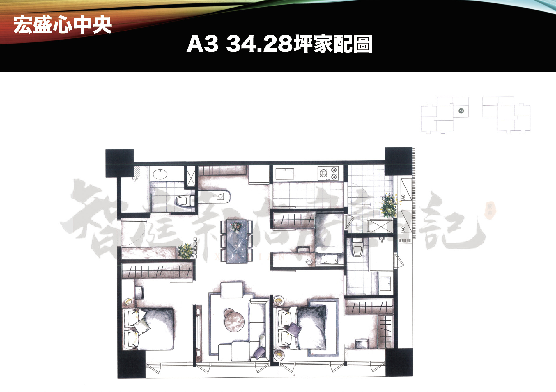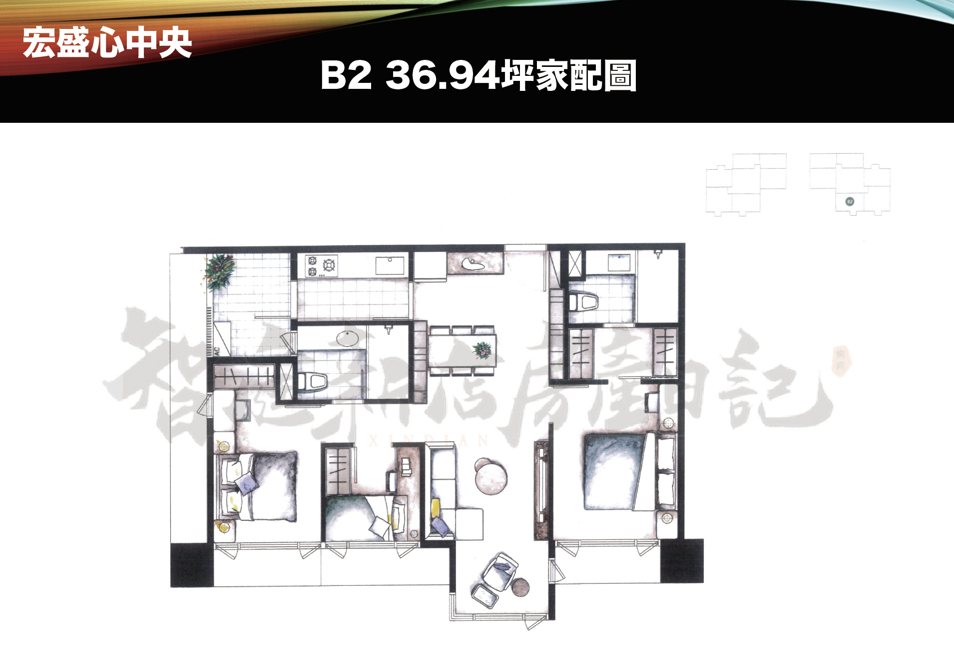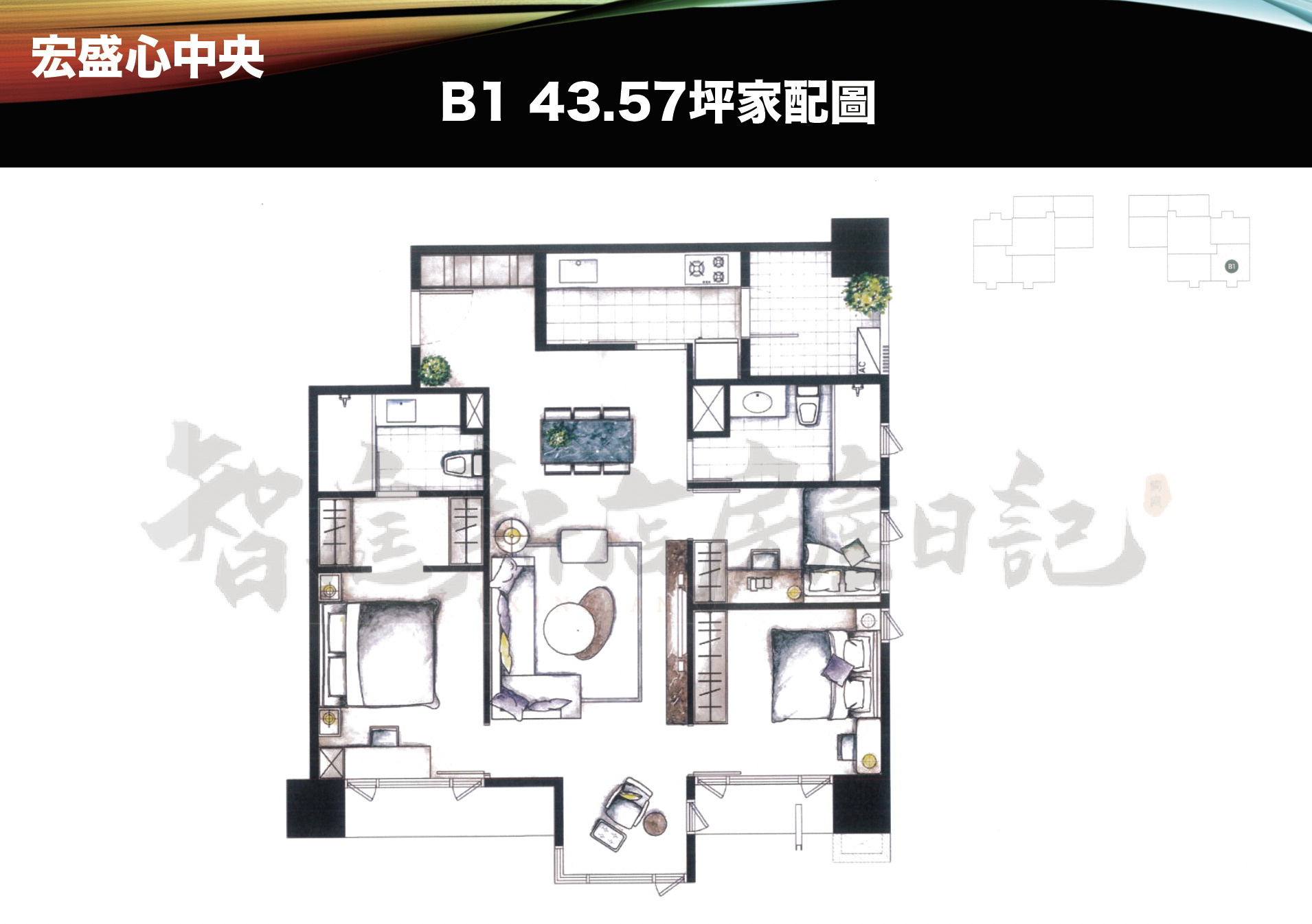 宏盛心中央,建商宏盛建設,知名建案:宏盛帝寶,宏盛新中央基地為1142坪,樓高13F,地下B3F,社區大廳挑高為7米8,其他樓層皆為3米6,住家戶數137戶,店面4戶,車位數131個平面車位(全數車位都幫你拉好充電線),車位清潔費為800元,管理費暫定90元/坪,社區管理代管5年,5年管理費都由宏盛建設幫你負擔,綠建築:黃金級,公設比34.8%,建蔽率30.49%。規劃為兩棟建築,A棟靠近遠雄青青,B棟靠近斯馨路,都是為一層六戶鏡相規劃,室內高度3米6,樓地板厚度15cm,規劃坪數 兩房25、26坪,三房規劃34、37、43坪,13樓為合併戶A1、B1更變約70多坪另配露台,則A7、B7坪數不變34坪,A1、A2、B1、B2看國小預定地(現在為文教預定地,預計會為雙語學校、如人數不夠會改為圖書館其他相關)。
