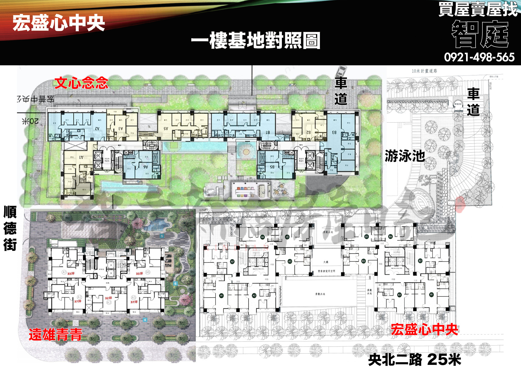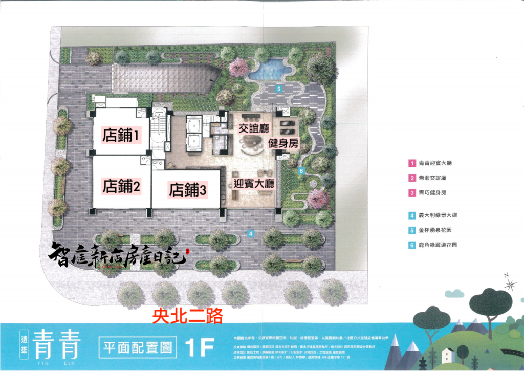 建設公司:遠雄建設,營造公司:遠雄營造,基地413坪,遠雄青青門牌地址:新北市新店區央北二路,總戶數48戶(住宅45戶,店面3戶),車位規劃48個,公設比34%,社區規劃3房,32坪、37坪,少見RC結構,規劃地上10F、地下3F,,社區入口正面對央北重劃區的國小預定地,一樓挑高4米5,公設集中在一樓的位置,有接待門廳跟交誼廳、咖啡廳,以及戶外的庭園,RF會有個簡單的曬被區。