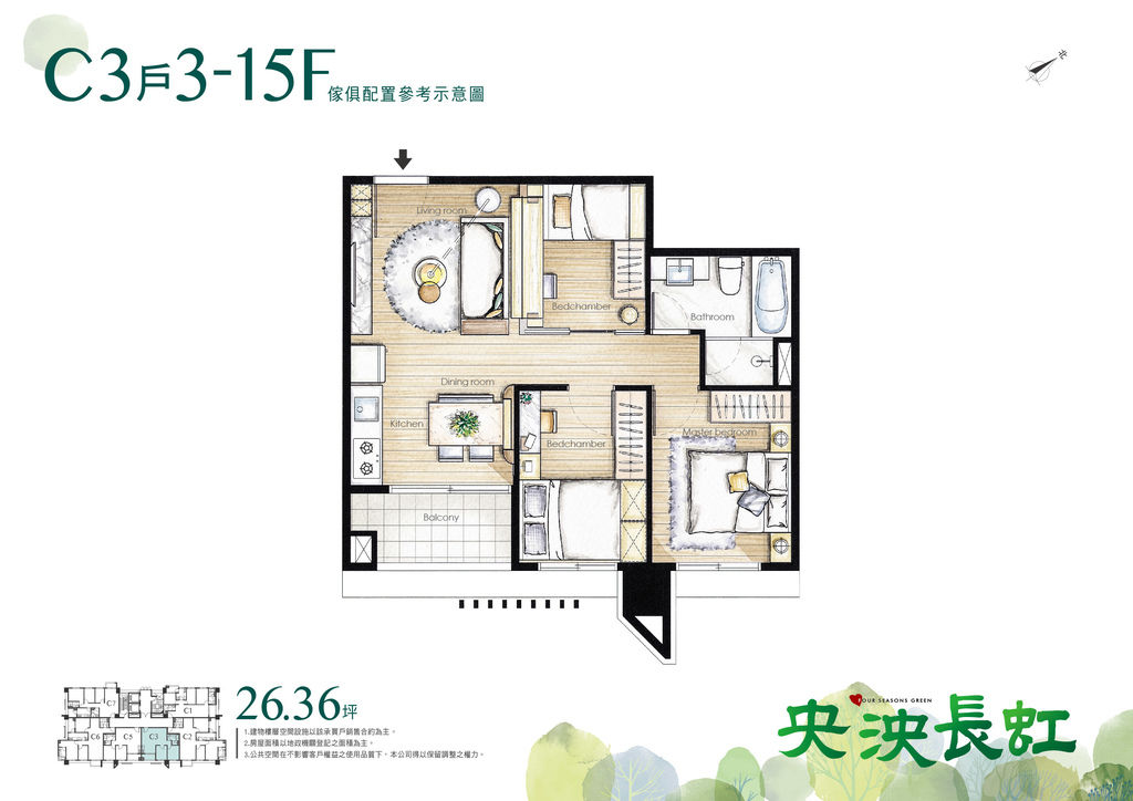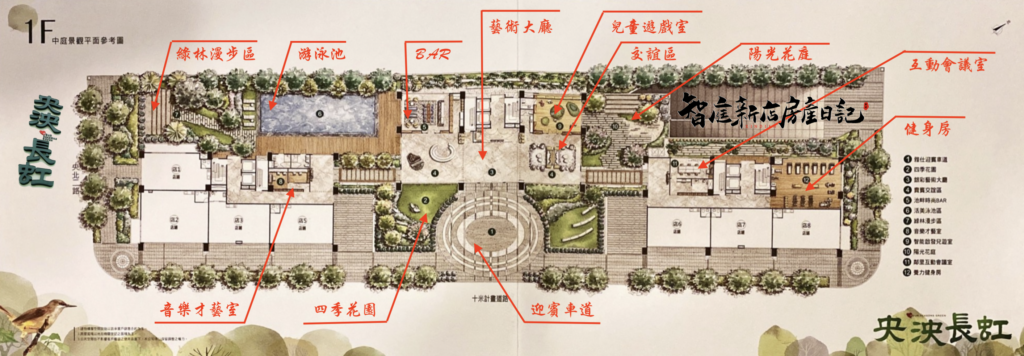 『央泱長虹』建商為上市公司長虹建設,基地面積1543坪,建築規劃:3棟(A、B、C),地上15樓,地下4樓,產品規劃:2~4房(26~60坪型)兩房26坪型、三房(35、39坪型)、3+1房(44坪型)、四房(60坪) ,總戶數:289戶,社區公設比:32.8%~33.2%,結構工程:RC,店面規劃:7個店面,車位規劃:289個,預計完工日:2023年第四季,公設:接待大廳、中庭花園、空中花園、交誼廳、會議室、閱覽室、游泳池、健身房、親子遊戲區兒童遊戲區、KTV、瑜伽教室、信箱區、曬被區、Lounge Bar、家教室。