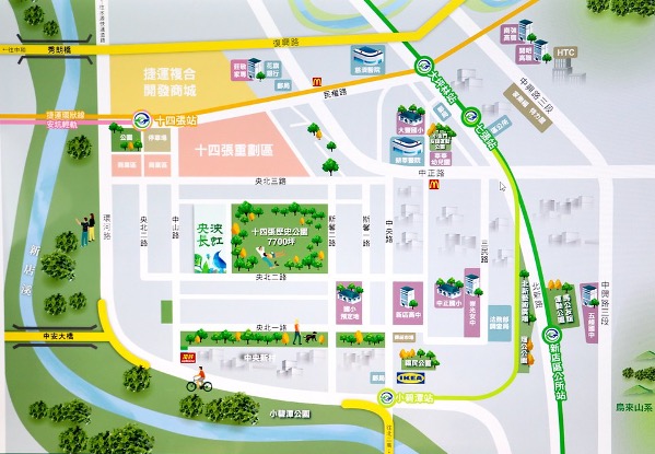 央泱長虹優點就是下樓就7700坪中央公園,位於央北重劃區正中央位置,離中央公園近,離未來十四張重劃區也近,近環河快速道路也近國道3號高速公路。